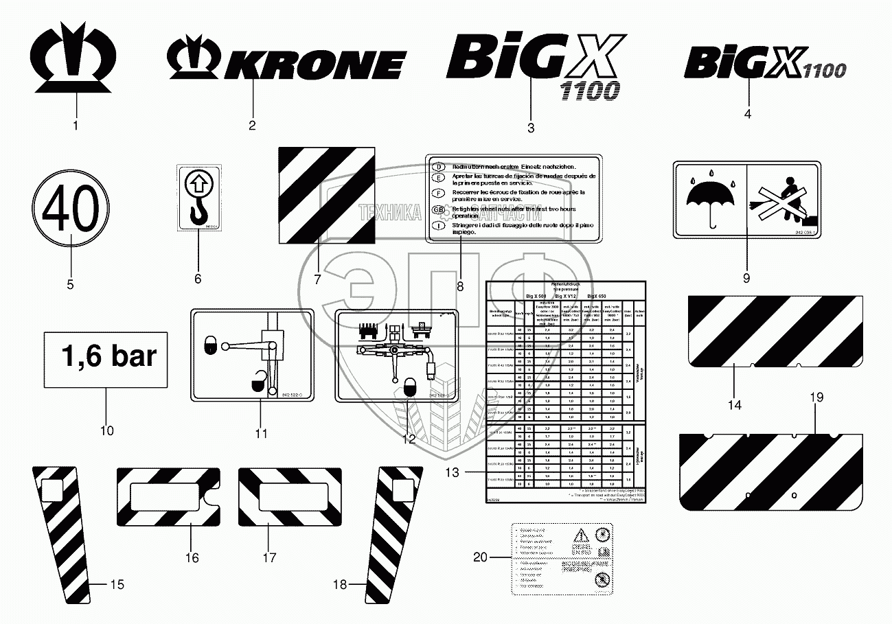 Каталог запасных частей к технике: KRONE BIG-X-1100. General information labels