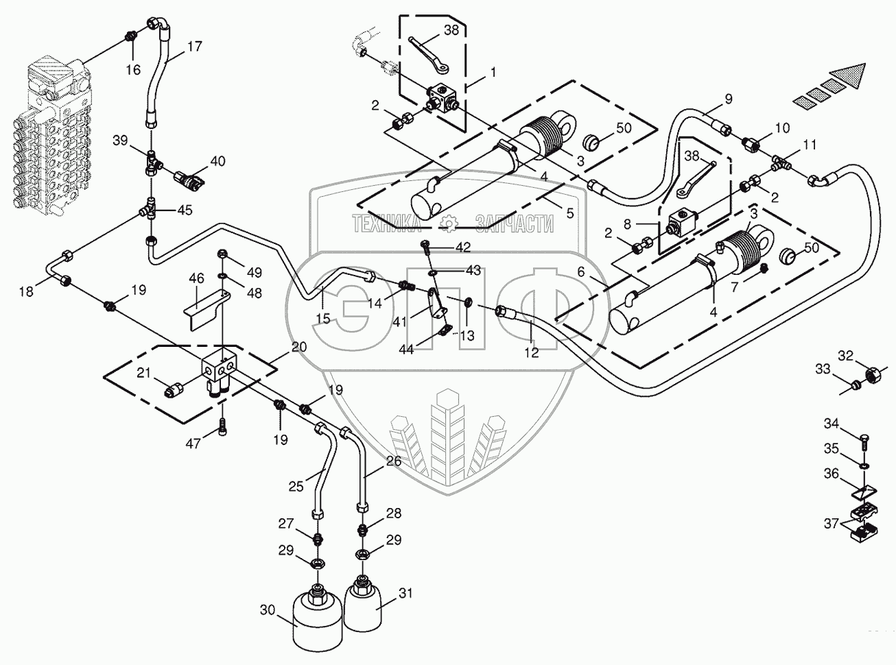 Каталог запасных частей к технике: KRONE BIG-X-500. Hydraulics-lift