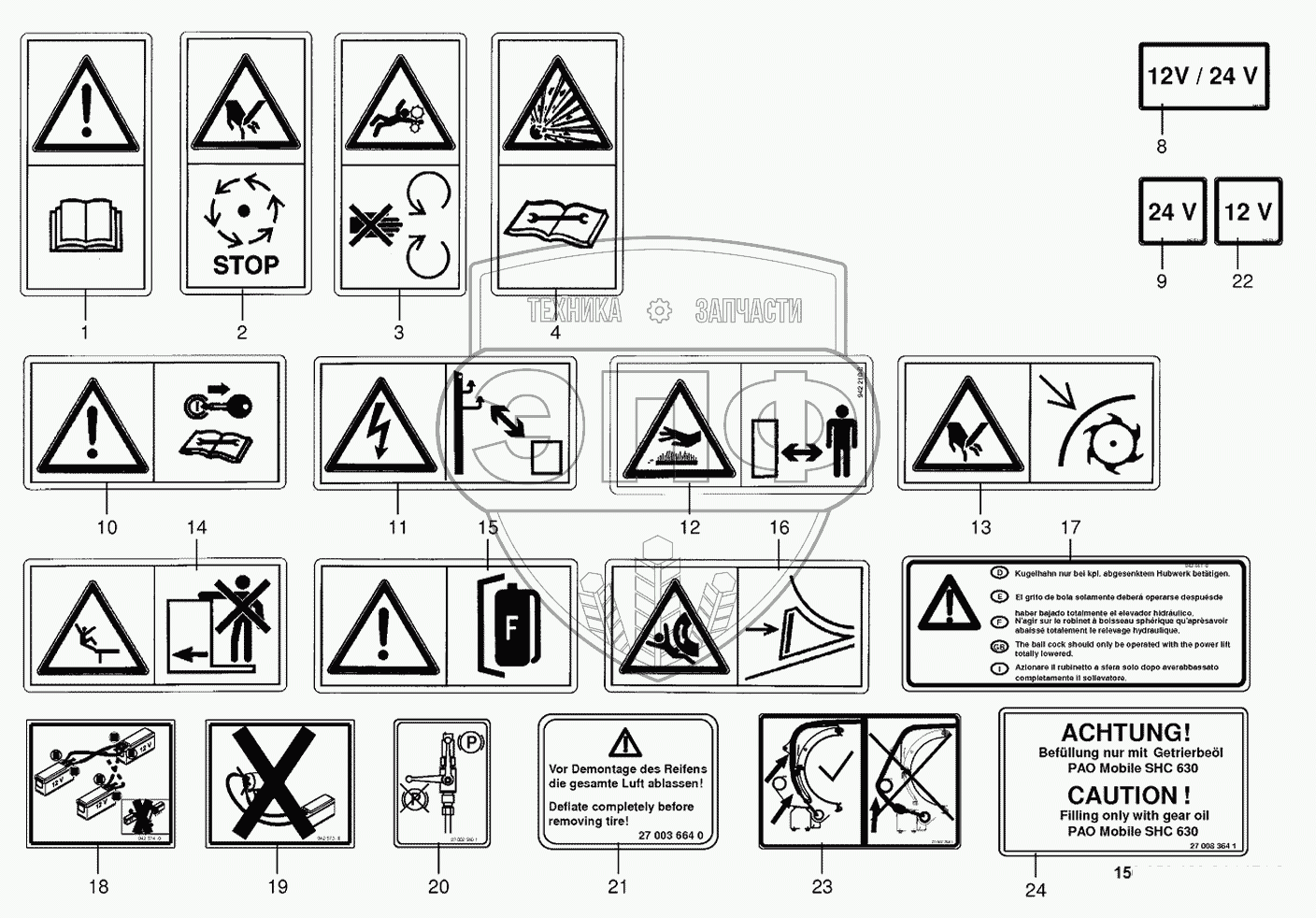 Каталог запасных частей к технике: KRONE BIG-X-500. Warning signs