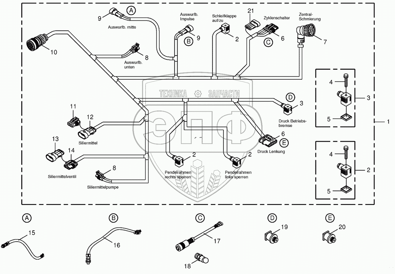 Каталог запасных частей к технике: KRONE BIG-X-500. Wiring harness-below the cabin