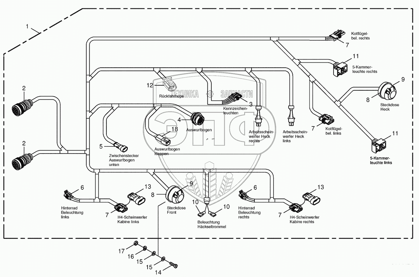 Каталог запасных частей к технике: KRONE BIG-X-500. Wiring Harness-lighting