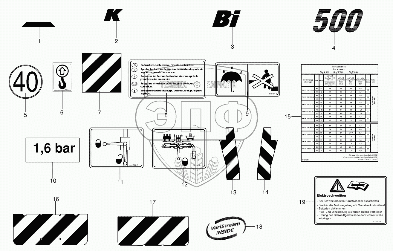 Каталог запасных частей к технике: KRONE BiG X 500. General information labels