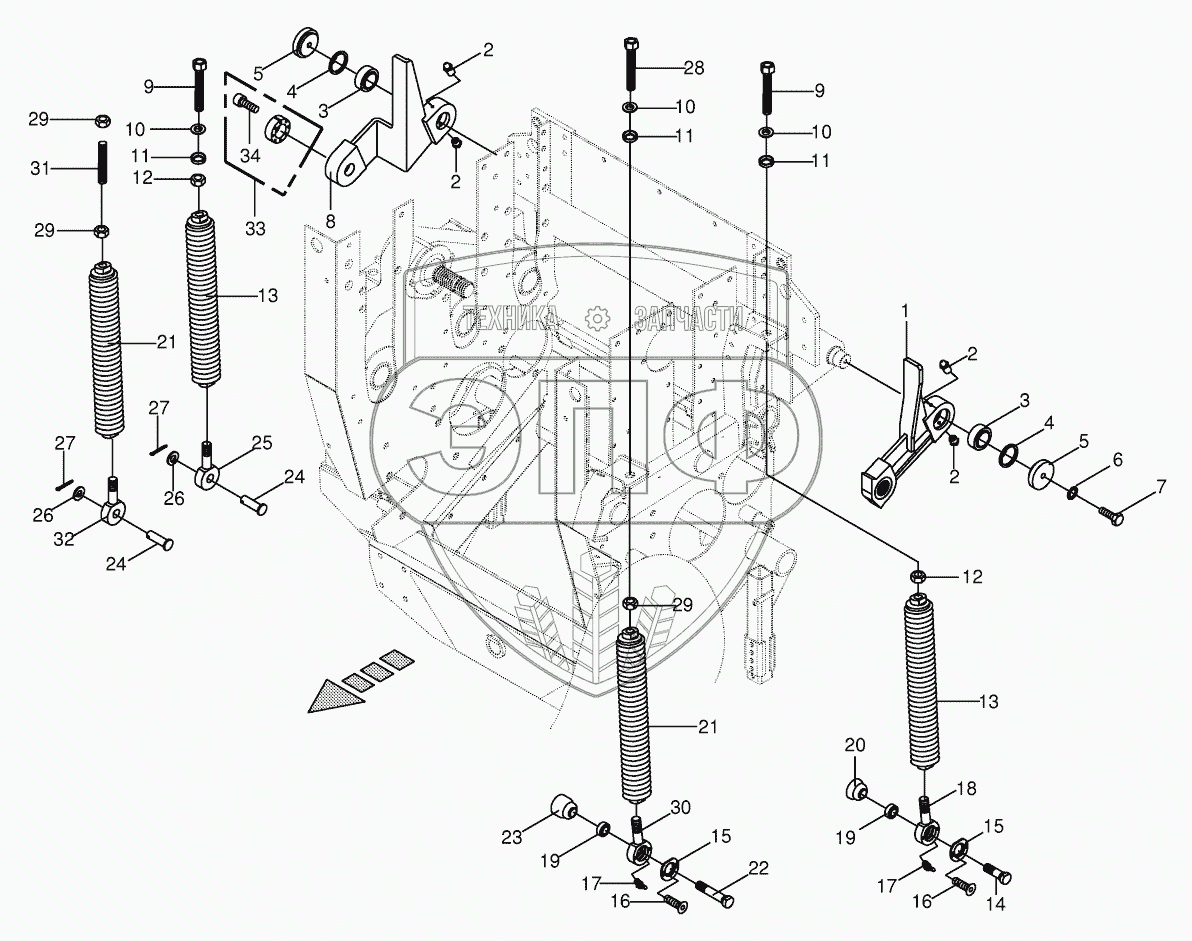 Каталог запасных частей к технике: KRONE BiG X 500. Oscillating levers/Tension spring