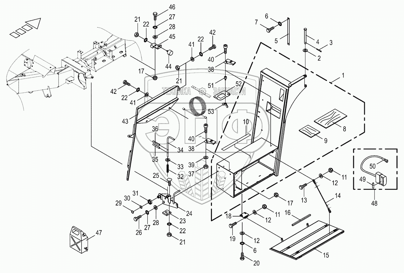 Каталог запасных частей к технике: KRONE BiG X 500. Tool box - pivoting
