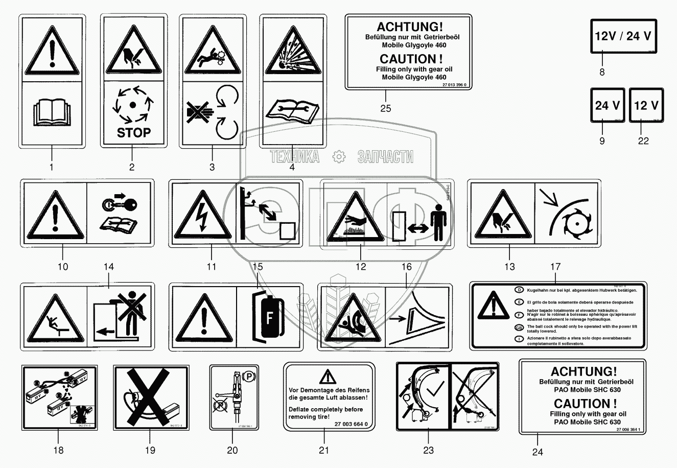 Каталог запасных частей к технике: KRONE BiG X 500. Warning signs