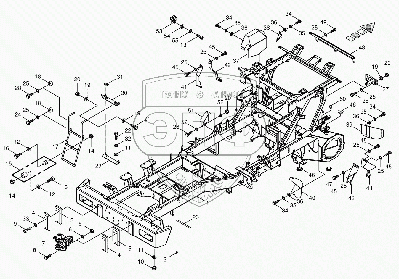 Каталог запасных частей к технике: KRONE BIG-X-600. Frame / trailer hitch / ascending ladder