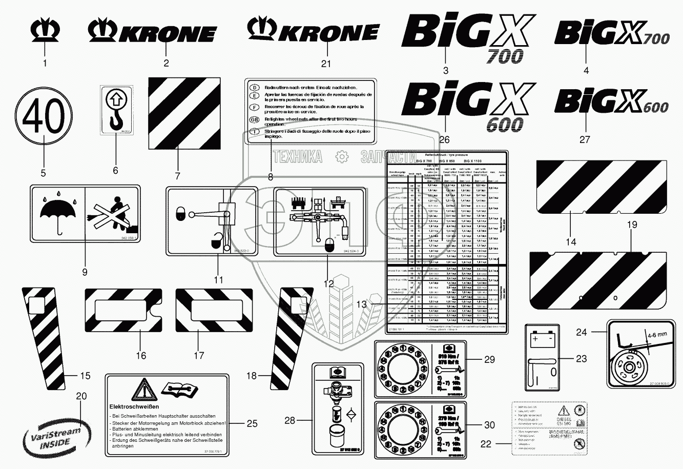Каталог запасных частей к технике: KRONE BIG-X-600. General information labels