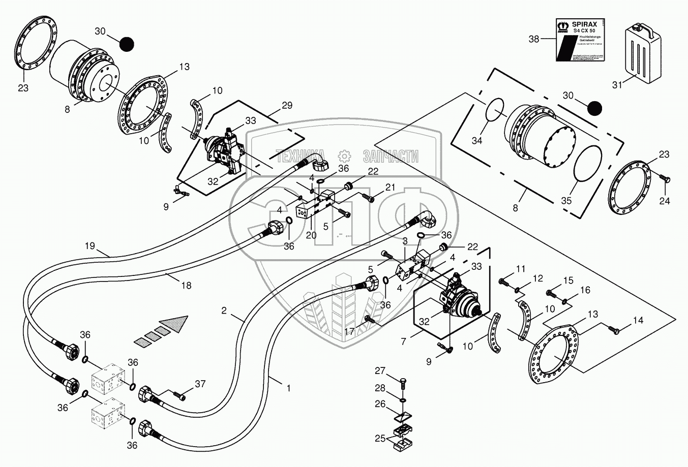 Каталог запасных частей к технике: KRONE BIG-X-600. Traction drive wheel engine -front