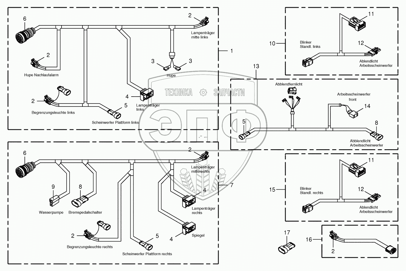 Каталог запасных частей к технике: KRONE BIG-X-600. Wiring Harness - lighting -front