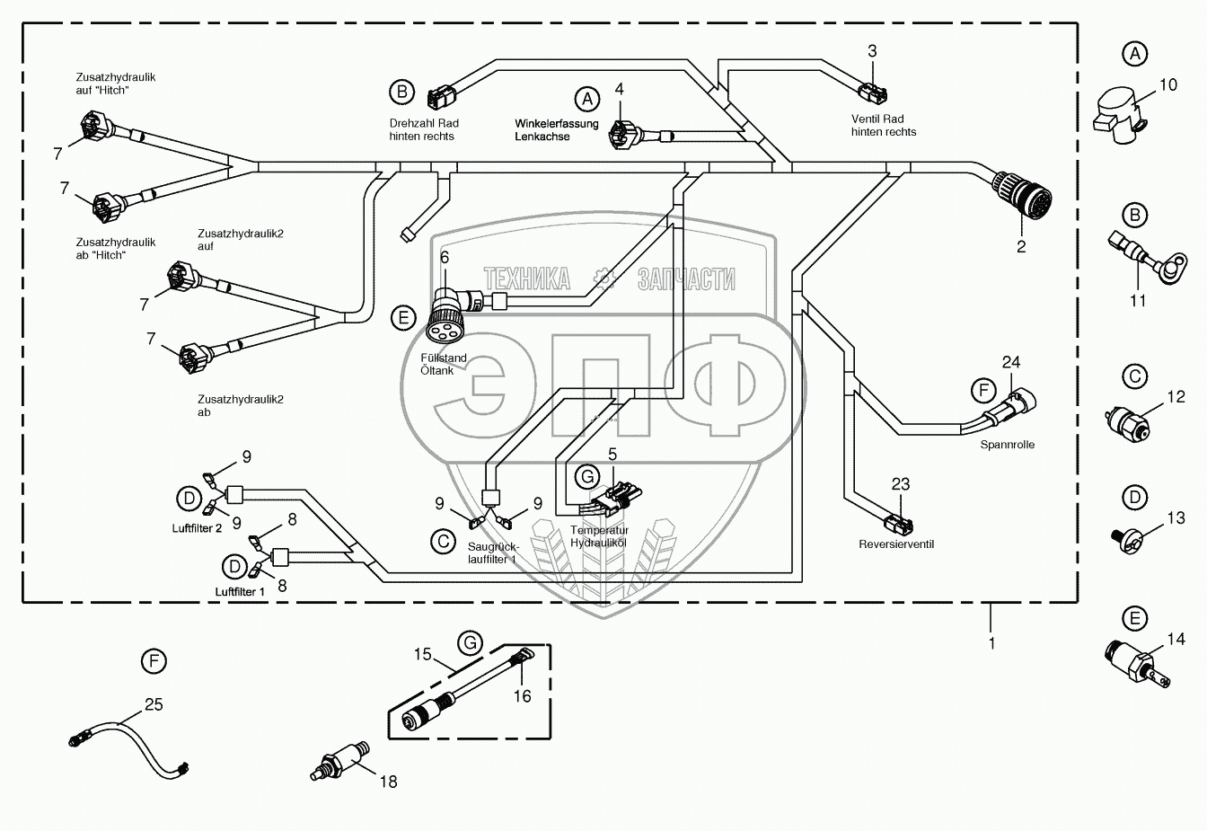 | 1 | 200814742 | Ca. harn. rear, oil tank, drive val. | Нет на складе | |