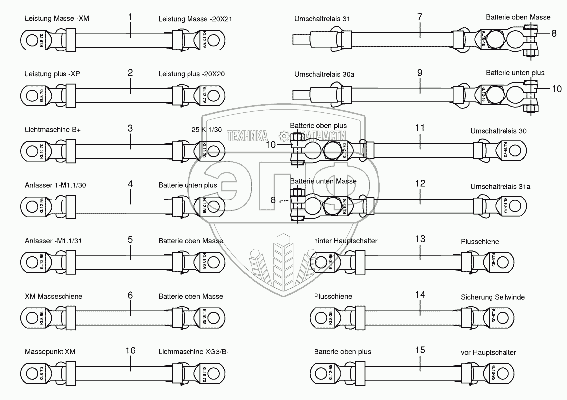 Каталог запасных частей к технике: KRONE BIG-X-600. Battery and ground cable