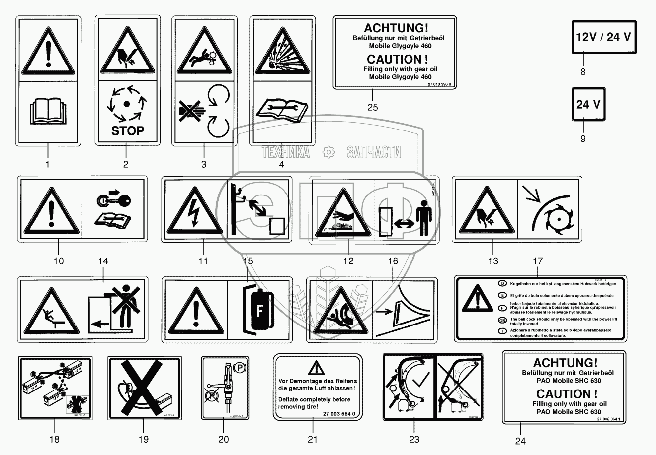 Каталог запасных частей к технике: KRONE BIG-X-600. Warning signs