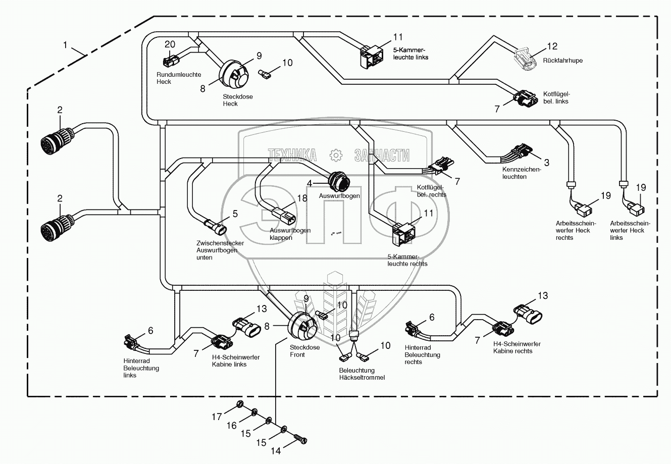 Каталог запасных частей к технике: KRONE BIG-X-600. Wiring Harness-lighting-back