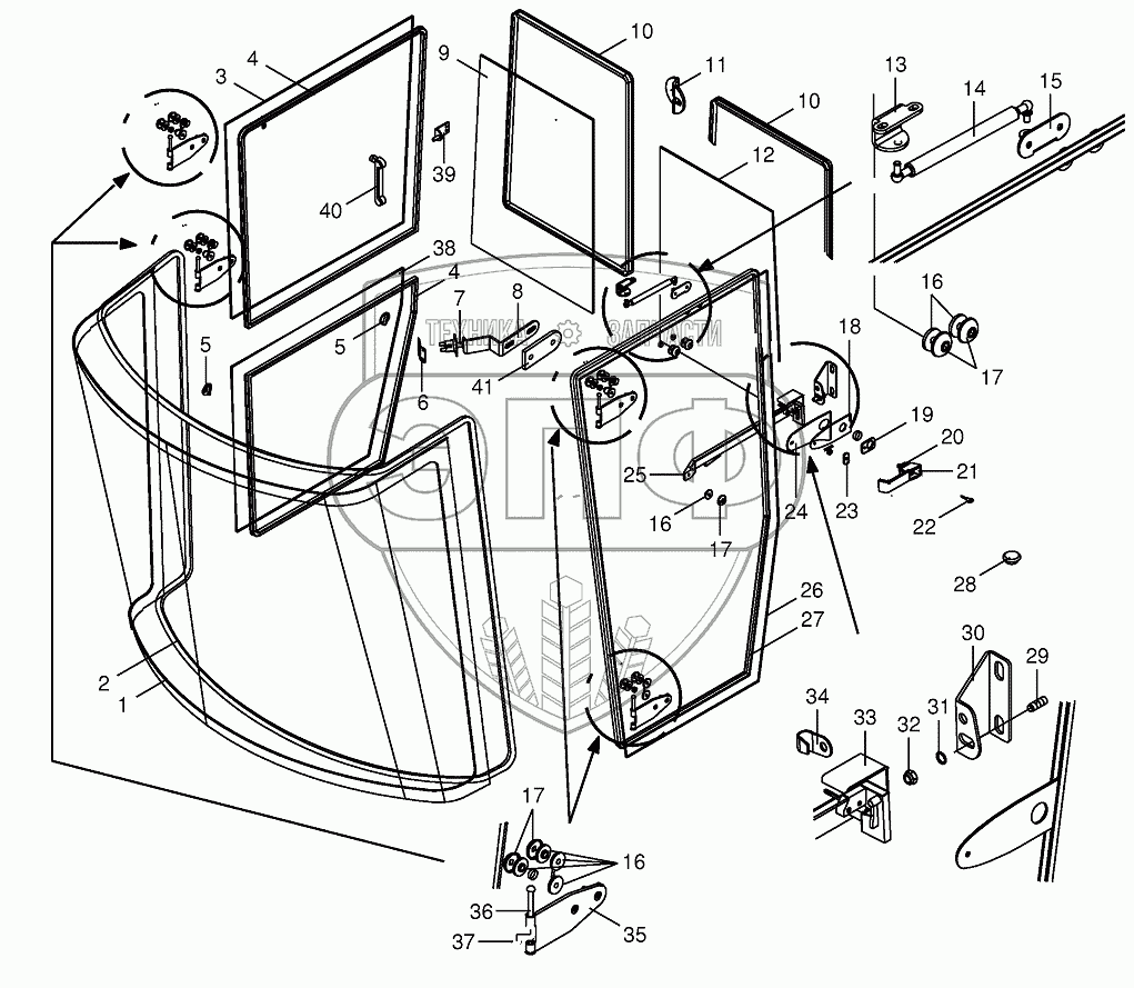 Каталог запасных частей к технике: KRONE BIG-X-650. Cab-glazing