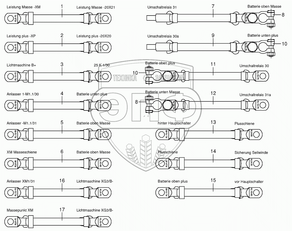 Каталог запасных частей к технике: KRONE BIG-X-700. Battery and ground cable