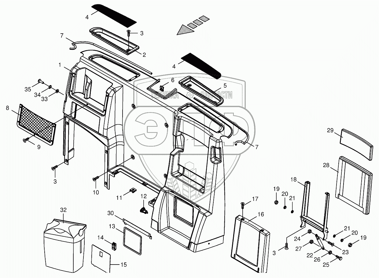 Каталог запасных частей к технике: KRONE BIG-X-700. Cab-rear covering/passenger seat
