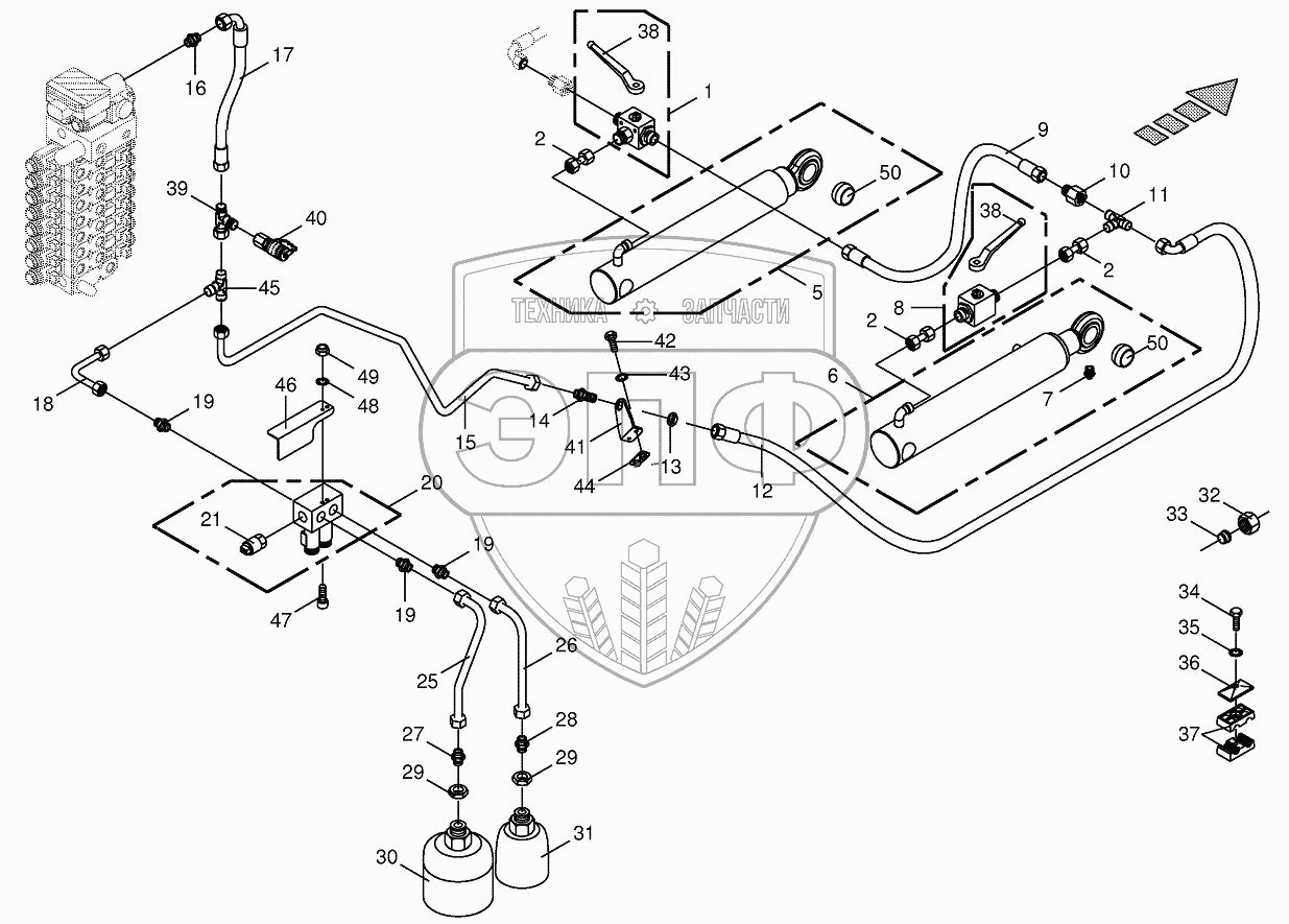 Каталог запасных частей к технике: KRONE BIG-X-700. Hydraulics-lift