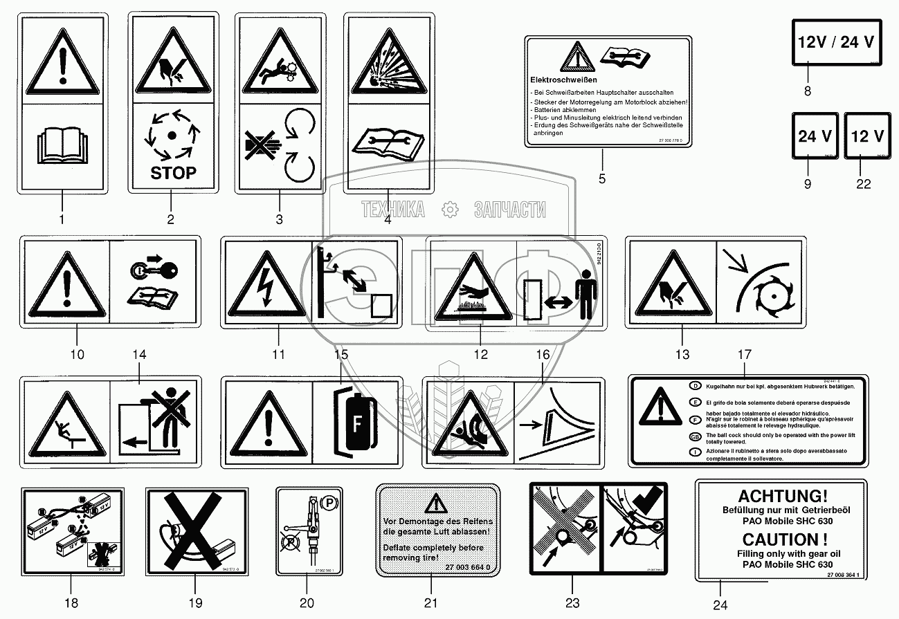 Каталог запасных частей к технике: KRONE BIG-X-700. Warning signs