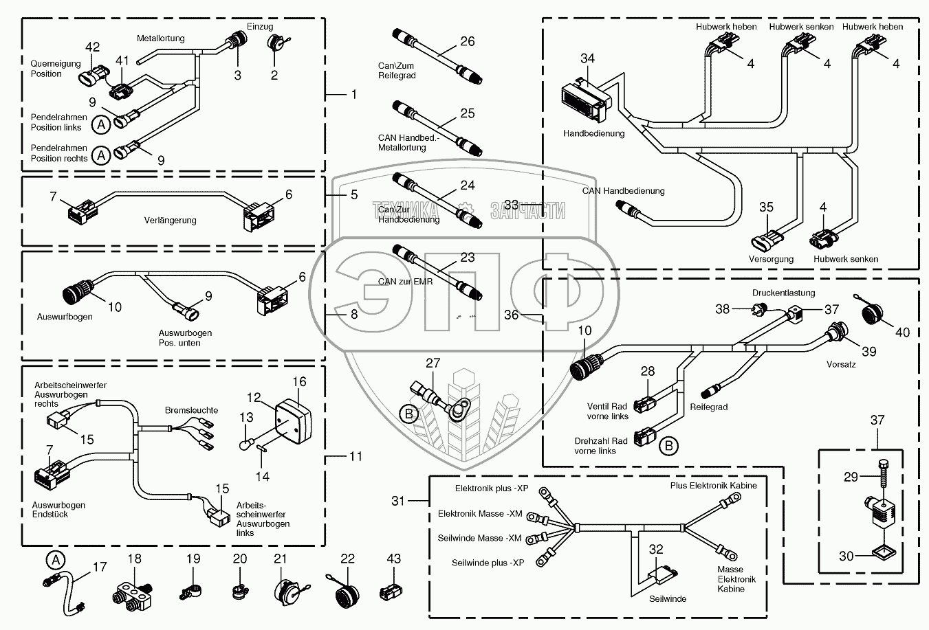 | 31 | 200800381 | Wiring harness-rope winch / electronics cab | Нет на складе | |