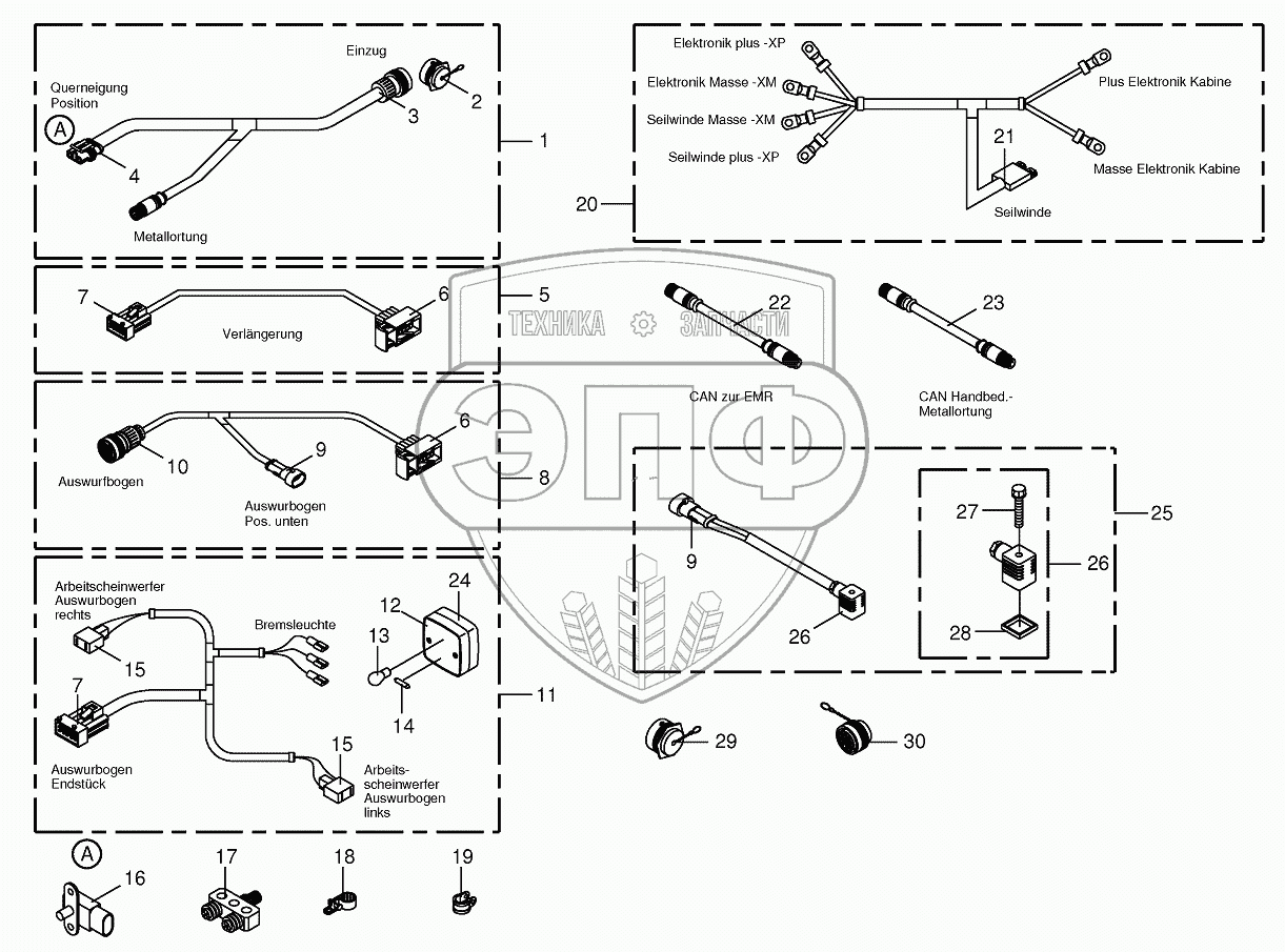 | 20 | 200800381 | Wiring harness-rope winch / electronics cab | Нет на складе | |