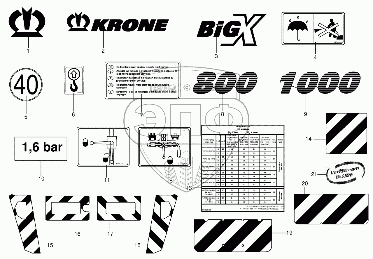 Каталог запасных частей к технике: KRONE BIG-X-800/1000. General information labels