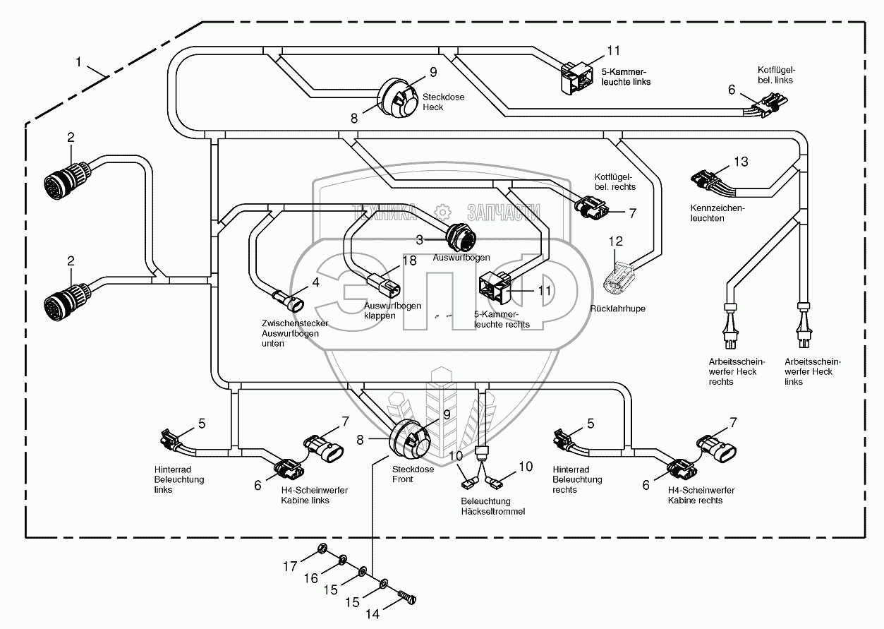 Каталог запасных частей к технике: KRONE BIG-X-800/1000. Wiring Harness-lighting