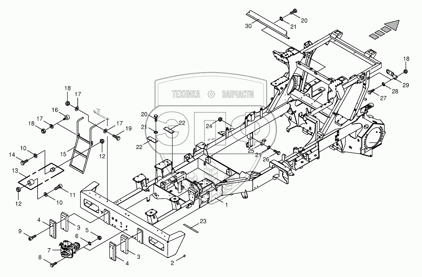 Каталог запасных частей к технике: KRONE BIG-X-800. Frame/trailer hitch/ascending ladder