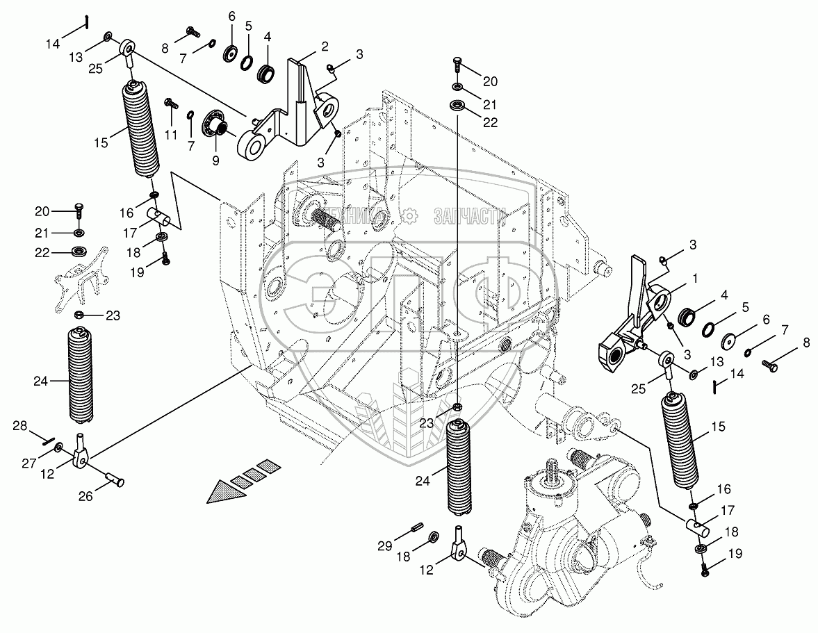 Каталог запасных частей к технике: KRONE BIG-X-850/1100. Oscillating levers/Tension spring