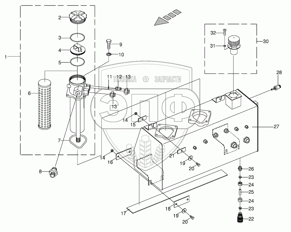 Каталог запасных частей к технике: KRONE BIG-X-V8/BIG-X-V12. Hydraulic tank