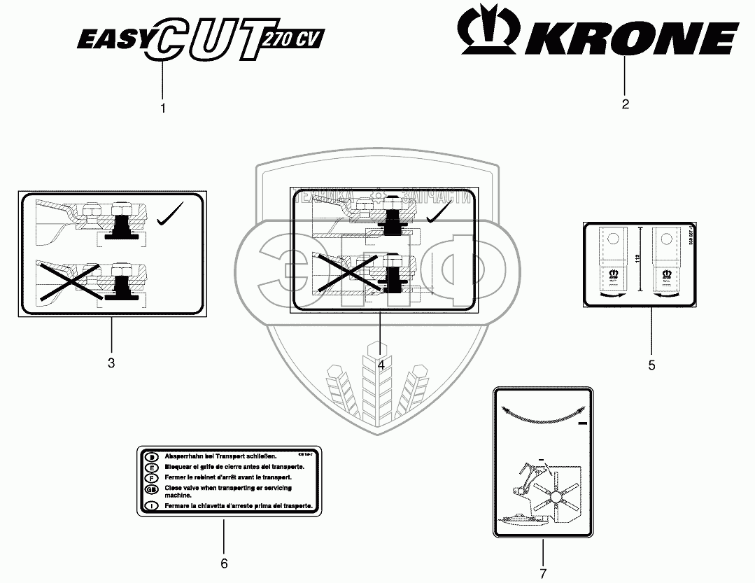 Каталог запасных частей к технике: KRONE EC270CV/320CV. General information labels