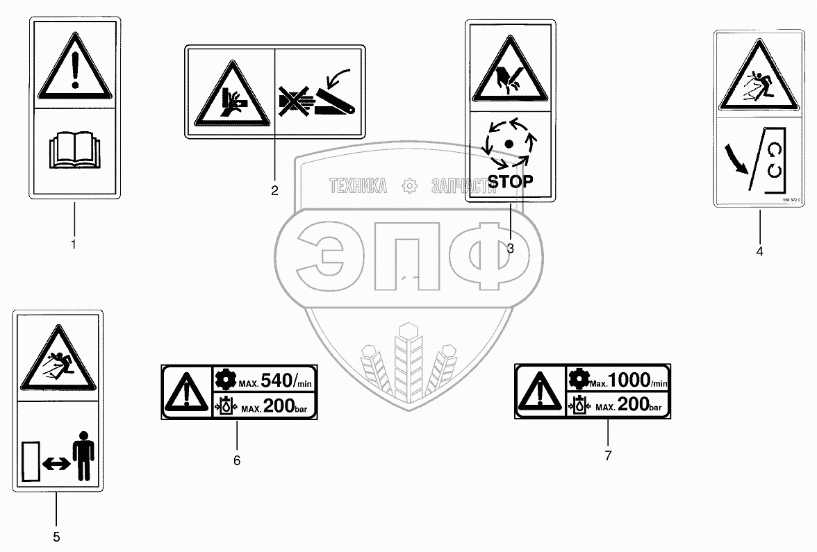 Каталог запасных частей к технике: KRONE EC280CV/320CV/280CR. Warning signs
