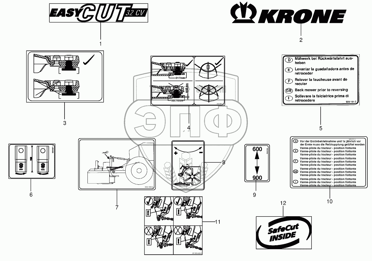 Каталог запасных частей к технике: KRONE EC28CV/C32CV/32CV-F. General information labels