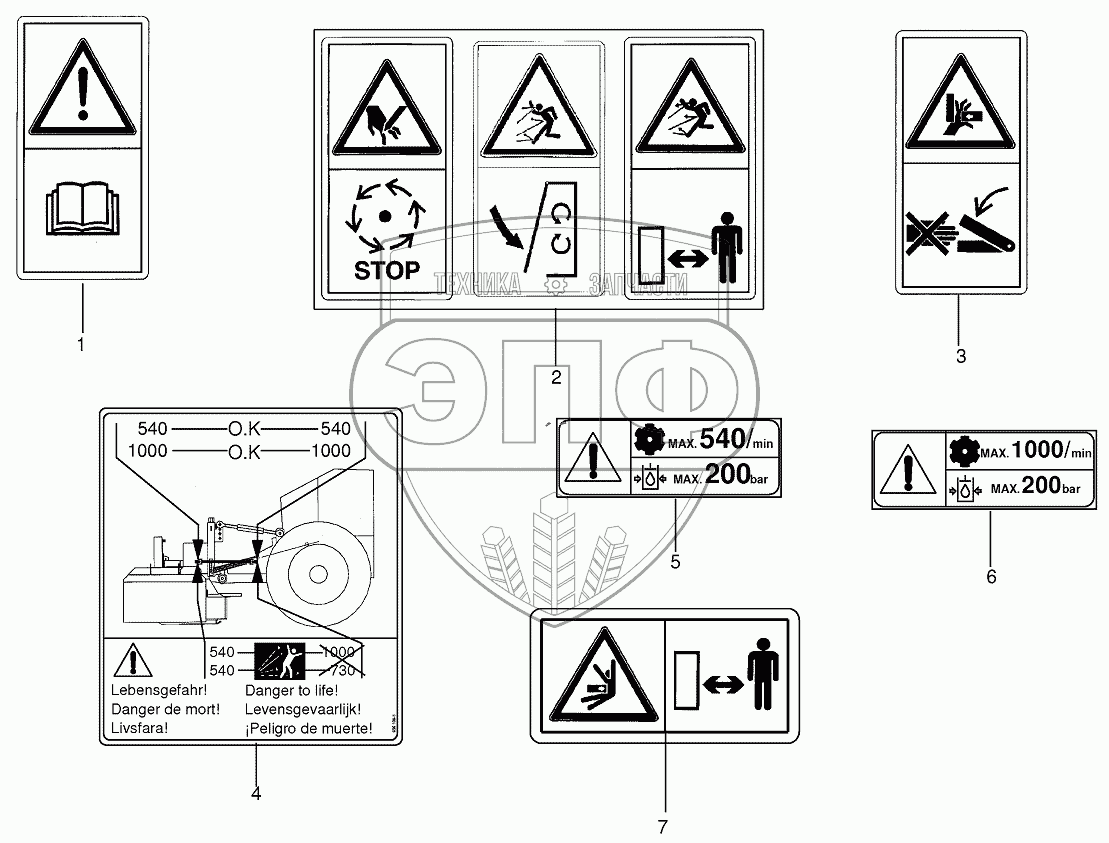 Каталог запасных частей к технике: KRONE EC 28/32. Warning signs