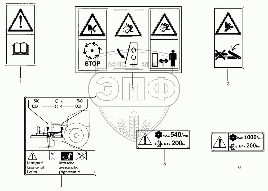 Каталог запасных частей к технике: KRONE EC 28/32. Warning signs