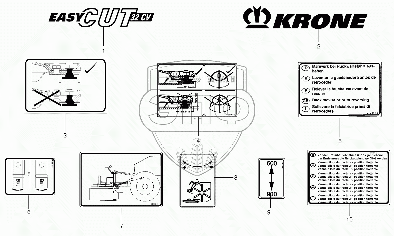 Каталог запасных частей к технике: KRONE EC 28/32CV. General information labels
