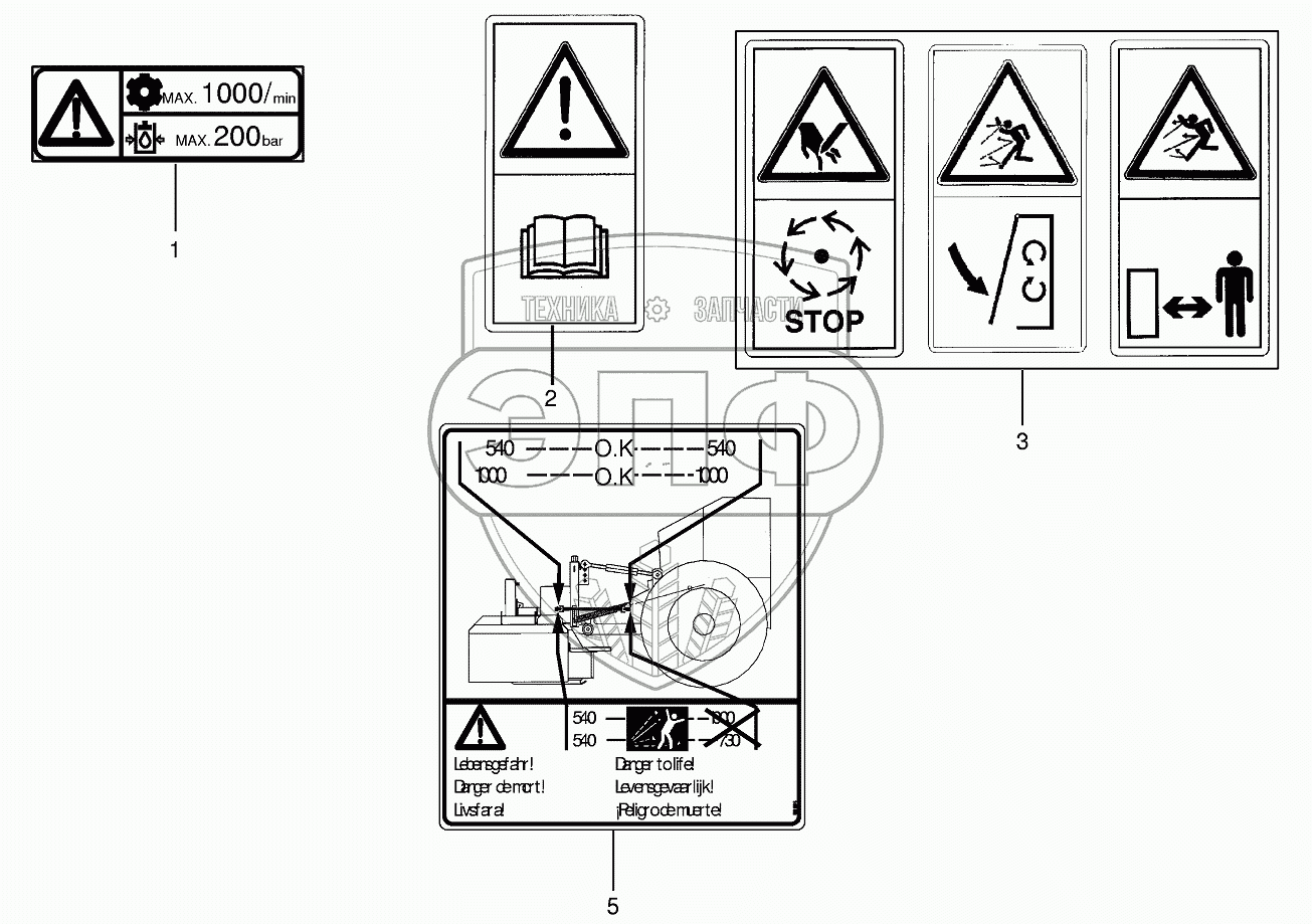 Каталог запасных частей к технике: KRONE EC 28/32CV. Warning signs