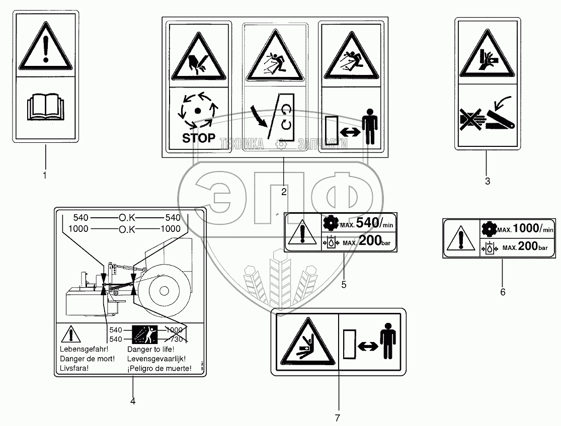 Каталог запасных частей к технике: KRONE EC 28/32P. Warning signs