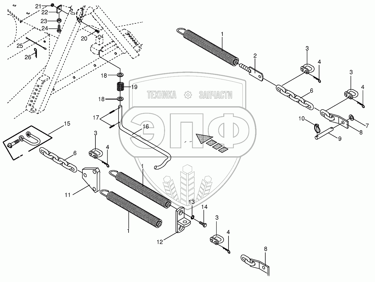 Каталог запасных частей к технике: KRONE EC 32CV. Spring compensation (530001-544499)