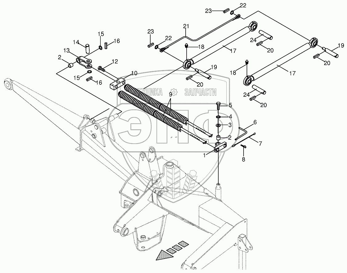 Каталог запасных частей к технике: KRONE EC 360/400. Spring compensation/Upper link
