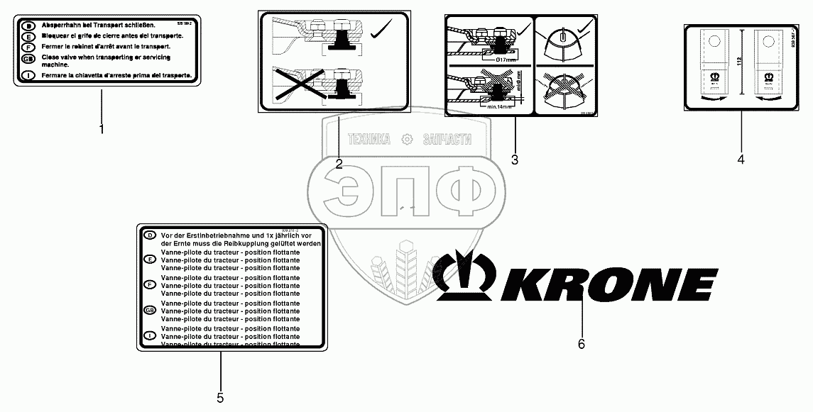 Каталог запасных частей к технике: KRONE EC 360/400. General information labels