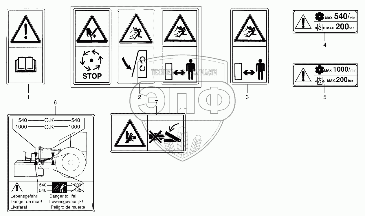 Каталог запасных частей к технике: KRONE EC F320CV. Warning signs