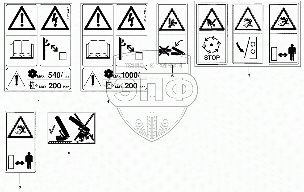 Каталог запасных частей к технике: KRONE ECR280CV/320CV. Warning signs