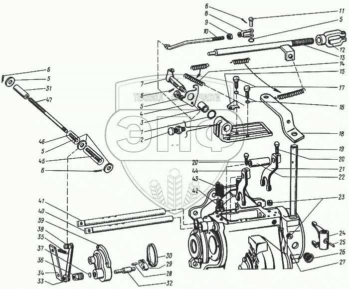 Каталог запасных частей к технике: КЗК Енисей 1200. Механизм управления 54А-4-1
