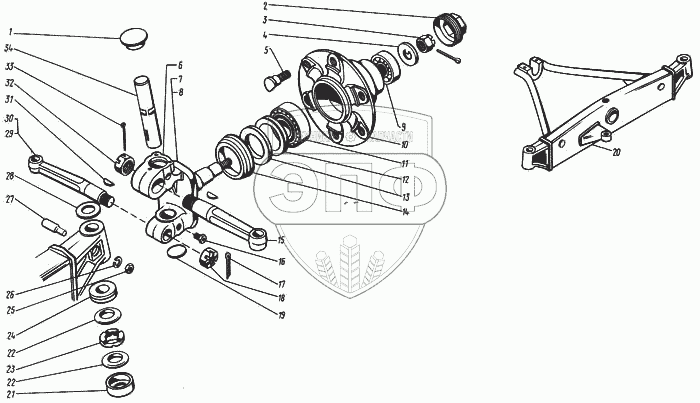 Каталог запасных частей к технике: КЗК Енисей 1200. Мост управляемых колес 54-10-1Б