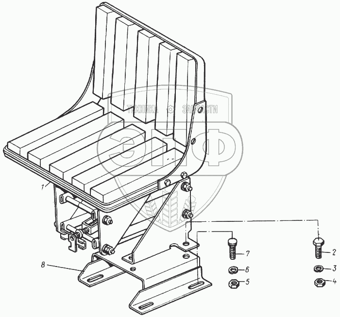 Каталог запасных частей к технике: КЗК Енисей 1200. Сиденье А31.00.000-1