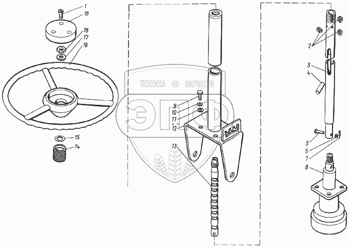Каталог запасных частей к технике: КЗК Енисей 1200. Управление рулевое КДМ 5-12Б