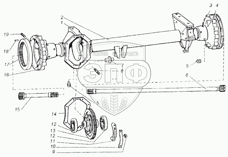 Каталог запасных частей к технике: КЗК Енисей 1200М. Кожух моста (54Б-4-8)