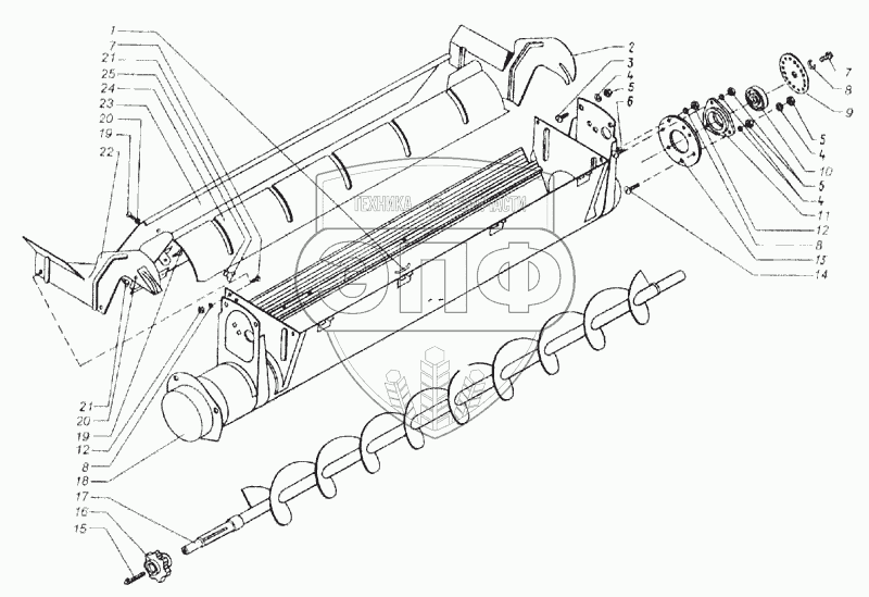 Каталог запасных частей к технике: КЗК Енисей 1200М. Шнек колосовой (КДМ2-19Г)