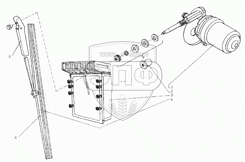 Каталог запасных частей к технике: КЗК Енисей 1200М. Установка стеклоочистителя