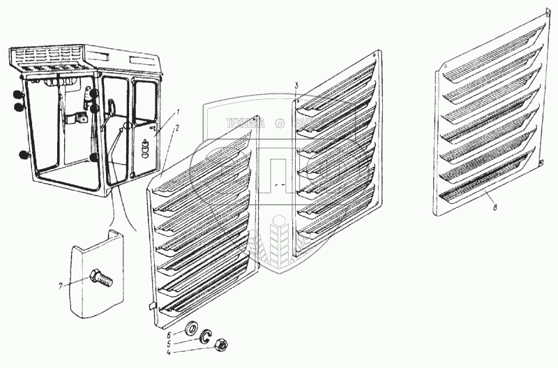 Каталог запасных частей к технике: КЗК Енисей 1200М. Установка жалюзи на кабине